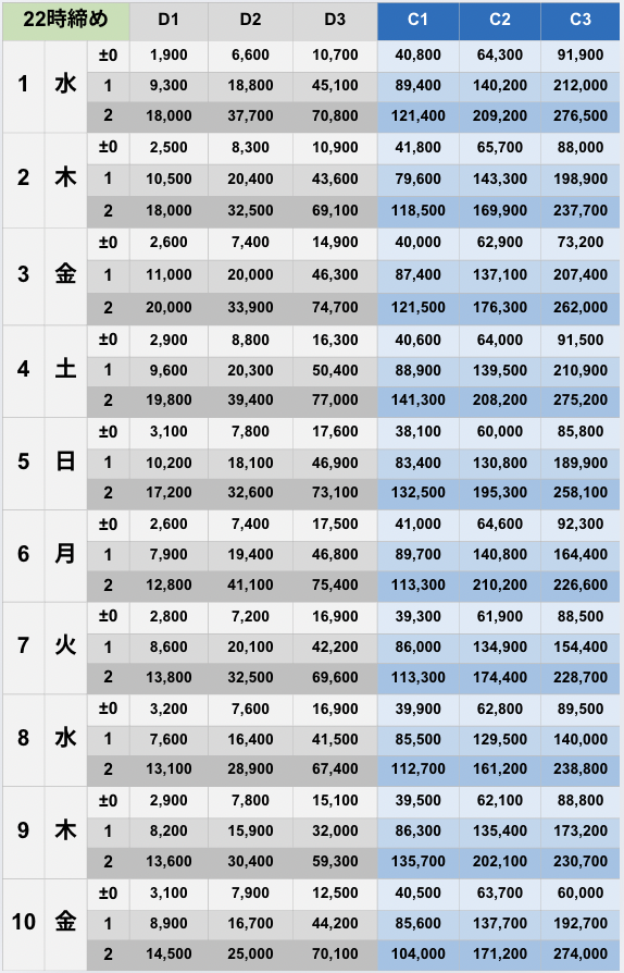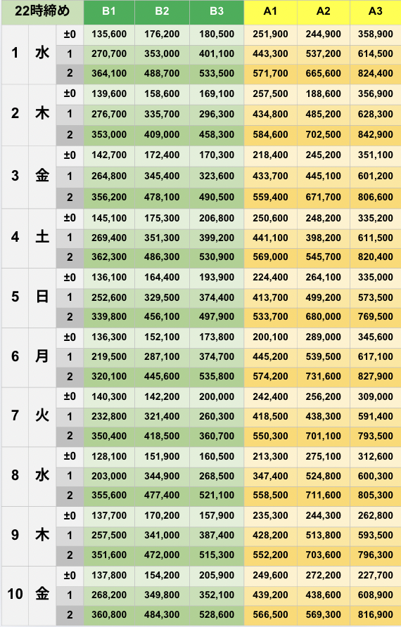 [±0]562,400 [+1]1,046,600 [+2]1,593,000