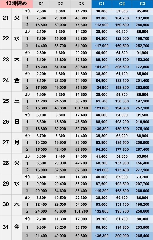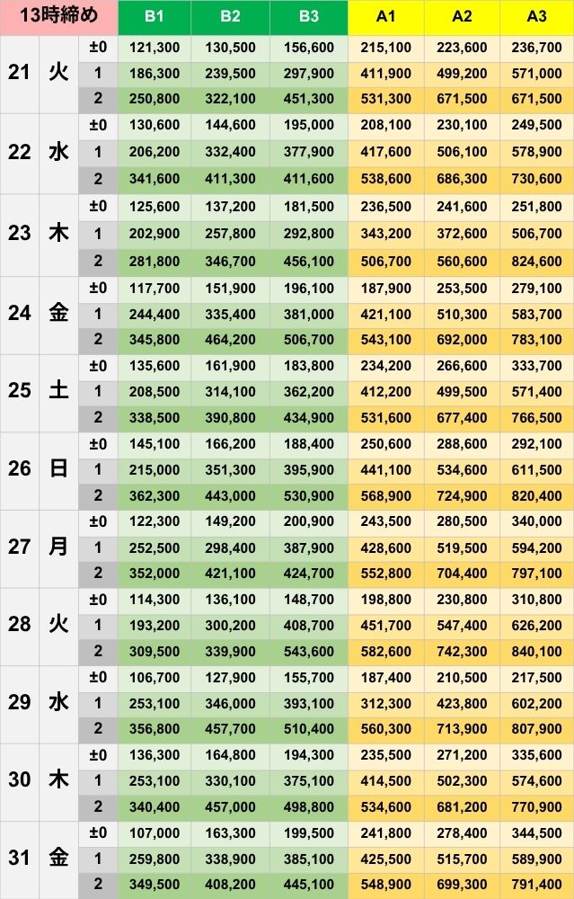 [±0]241,800 [+1]425,500 [+2]548,900