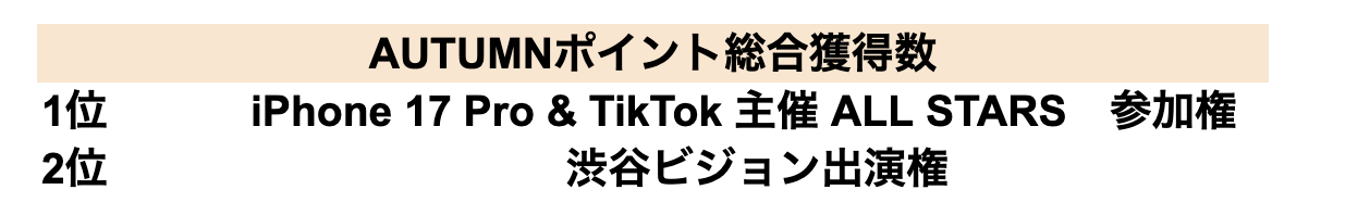 AUTUMN ポイントランキングに入賞をして、豪華プライズ獲得を得よう🔥