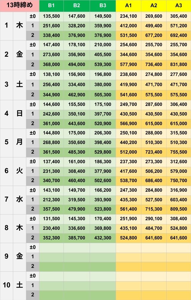 [±0]131,500 [+1]230,400 [+2]352,300
