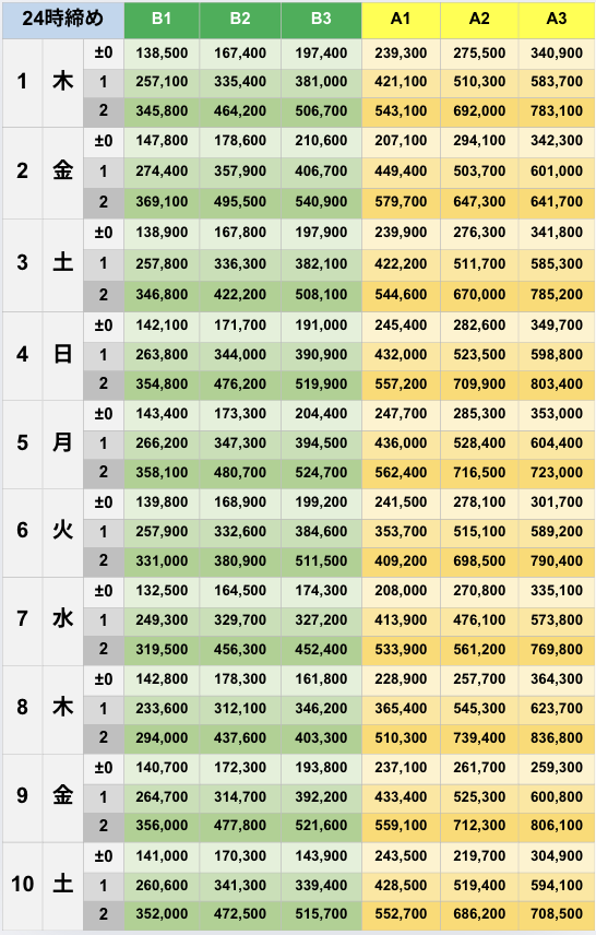 [±0]387,500 [+1]1,023,700 [+2]1,613,900