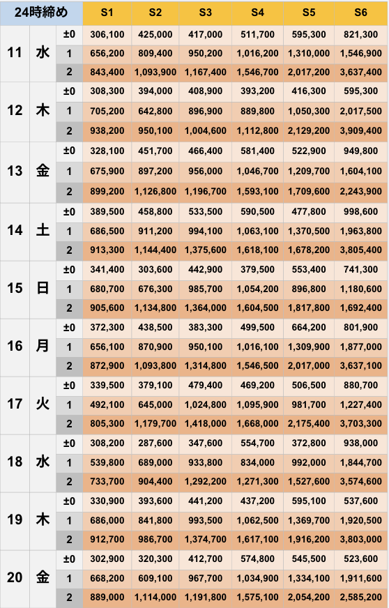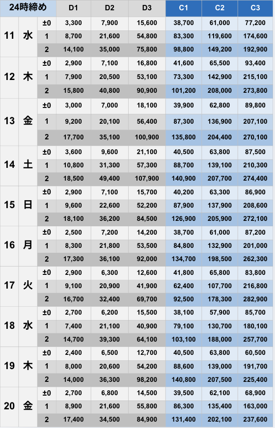 [±0]6,100 [+1]24,300 [+2]40,100