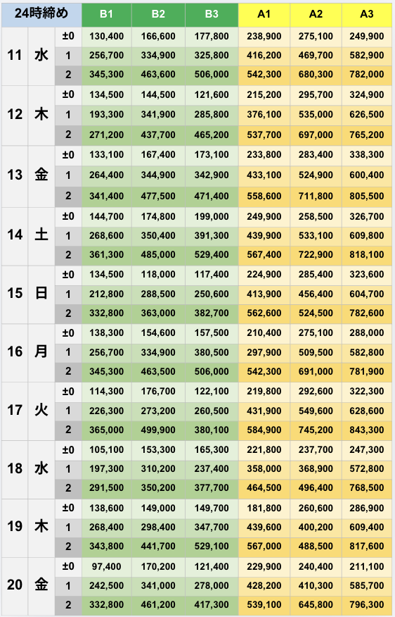 [±0]257,500 [+1]611,800 [+2]820,800